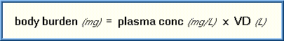 The volume of distribution may provide useful estimates as to how extensive the toxicant is distributed in the body. For example, a very high apparent VD may indicate that the toxicant has distributed to a particular tissue or storage area such as adipose tissue. In addition, the body burden for a toxicant can be estimated from knowledge of the VD by using the formula: